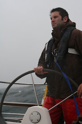 We headed out of Neah Bay by noon on Tuesday Spetember 8th, knowing that there was a low-pressure system in front of us making its way for the north end of Vancouver Island, and the winds in our path were to die after midnight. The first day of sailing wouldn't be great, but managable, and we would have 3-4 great days after that of good weather to help get us down to San Francisco. We spent the majority of the day motoring south taking us 30 miles off the coast. After dinner time (thank you mom for the beef stew!) the winds picked up from the east and we were making great headway down Washington's cost, sailing at 7-8 knots with winds at 12-15 knots. Great sailing! But at around midnight this all rapidly changed. The low-pressure system that was supposed to make its way well north of us decided to head straight over us. The winds kept increasing, rain squalls developed like nothing we had ever experienced, the only visibility was sheet lightening on the horizon, and other shipping was difficult to pin-point on the radar as the rain squalls domminated the screen. At this point it was impossible to penetrate forward along our intended southerly path. At 12:30am, we had fully reefed our sails, and the winds were gusting to 25 knots. There are no boat-holes with safe protection on this part of the coast (we were now 40 miles off the coast), so captain Jerry decided to run with the storm at our back towards Neah Bay where we had started 80 miles away!! The next 14 hours many of those in pitch black darkeness and continuous rain squalls, was a roller coaster ride...literally! with waves up to 20 feet, lifting our stern and propelling us at 10 knots over ground.